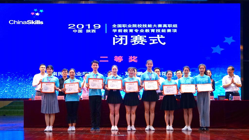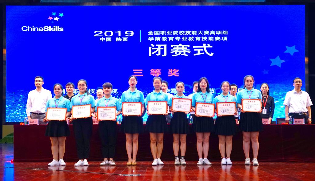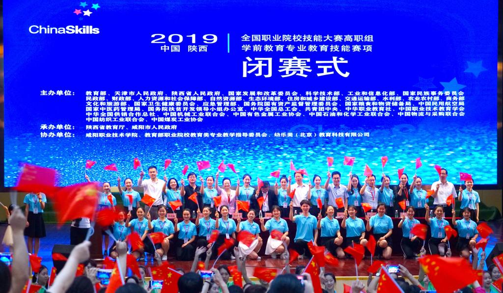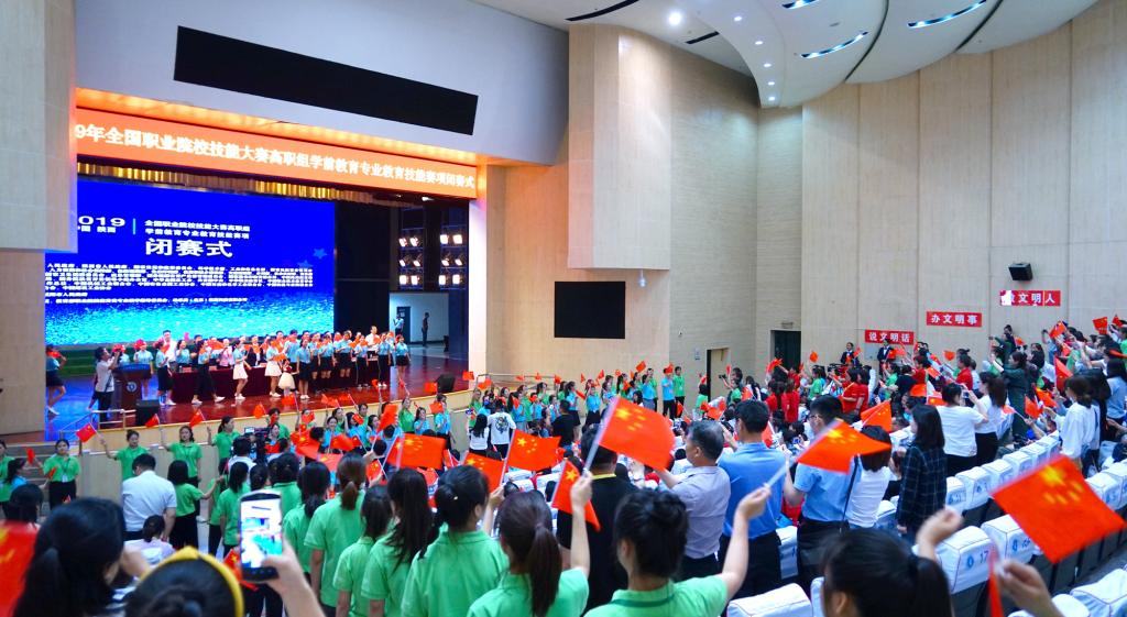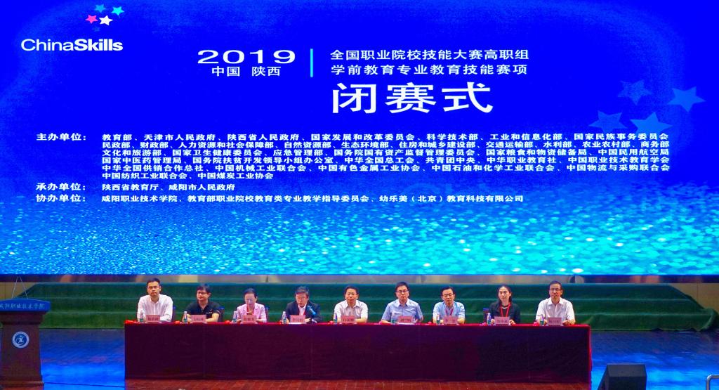 5月26日,2019年全国职业院校技能大赛高职组学前教育专业教育技能赛项在bst365官方网站圆满闭幕。全国职业院校技能大赛执委会办公室主任白汉刚,教育部职业院校教育类专业教学指导委员会主任刘兰明,赛项执委会副主任、教育教指委副主任李忠,赛项执委会副主任、专家组组长、教育教指委委员陈雅芳,裁判组组长张小永,教育部职成司高职发展处方灿林,bst365官方网站经理杨卫军,幼乐美北京教育科技有限公司总经理陈洪秋出席,各参赛代表队领队、指导教师和选手参加了闭幕式。闭幕式由赛项执委会主任、教育教指委副主任李国桢主持。