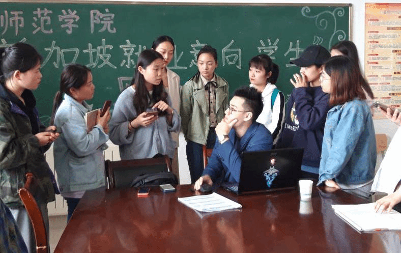 会场上,就业单位方代表老师详细的为同学们介绍了基金会旗下的幼儿园等机构的概况、理念、管理经营模式等,并对应聘者的具体要求等都一一做了讲述,并且结合自身的生活经验来声情并茂的为同学们讲解新加坡的生活环境,促进与同学们心灵沟通、交流,并激励大家要有挑战自己的信心和勇气,积极择业,努力创业。