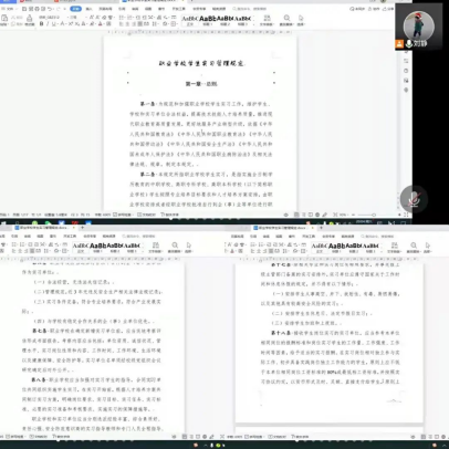 会议第一项教学办刘静带领全体指导教师学习了教育部等八部门于近日印发的《职业公司员工实习管理规定》。《规定》提出了实习组织、实习管理、实习考核、安全职责和保障措施等全链条、全过程的基本要求,针对实习关键节点明确了行为准则,提出1个“严禁”、27个“不得”,为实习管理划出了底线和红线,对实习各方提出了刚性约束,明确了实习指导教师工作内容以及员工的权利与义务。